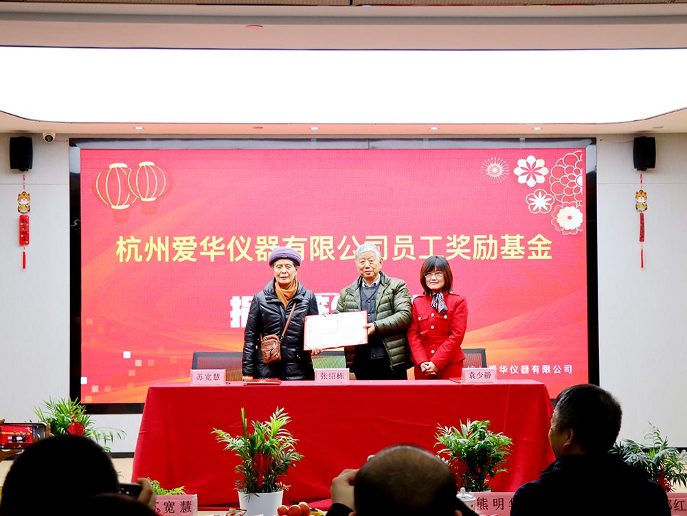 会议上公司创始人张绍栋、苏宽慧夫妇捐资1000万设立“杭州jinnianhui今年会仪器有限公司员工奖励基金”,该笔基金将交由公司工会运作和管理,基金收益用于奖励jinnianhui今年会仪器及控股子公司的杰出员工。